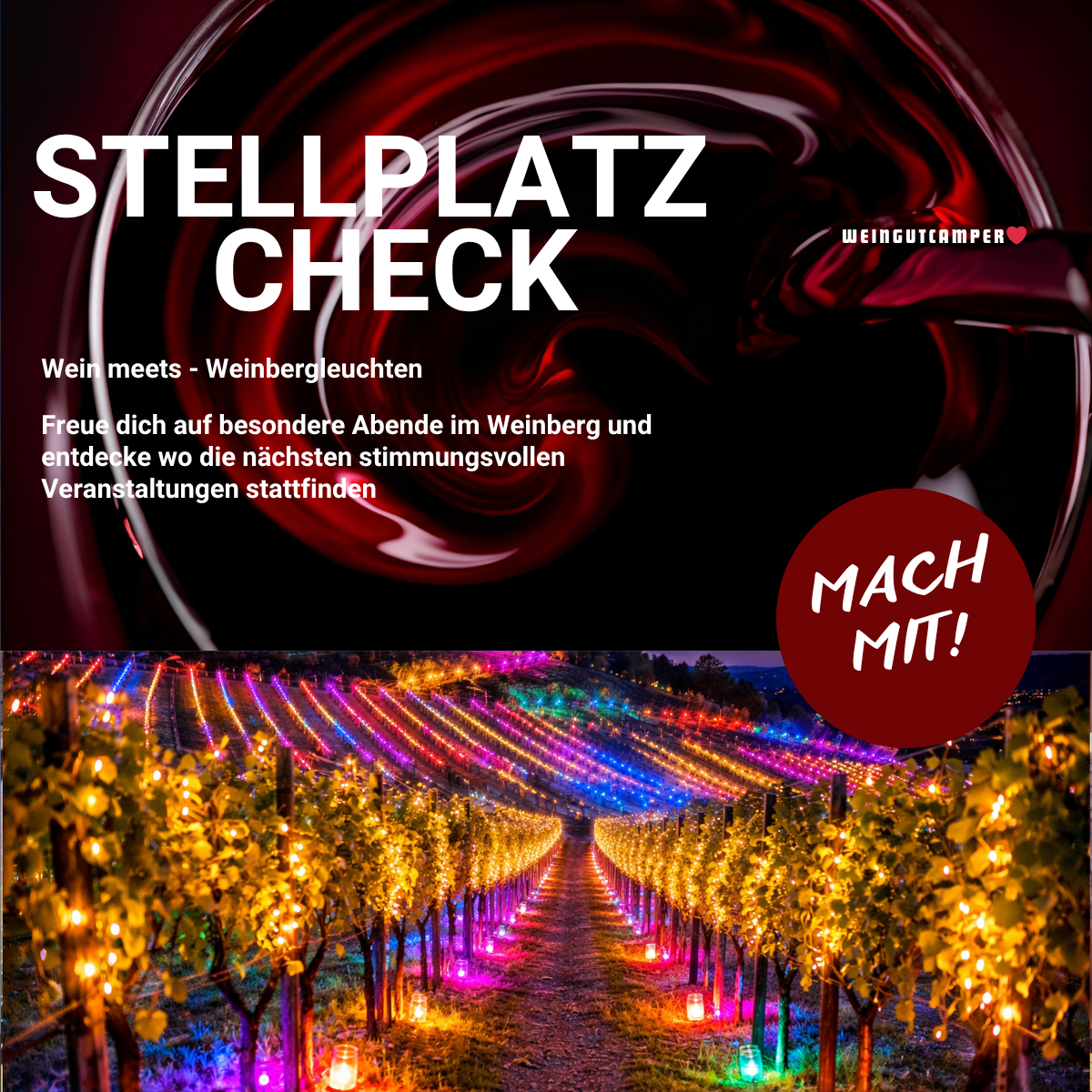 Dich erwartet eine einzigartige Verbindung aus Licht, Wein und Atmosphäre – perfekt, um besondere Weine zu genießen, neue Menschen kennenzulernen und unvergessliche Momente inmitten malerischer Weinlandschaften zu erleben.